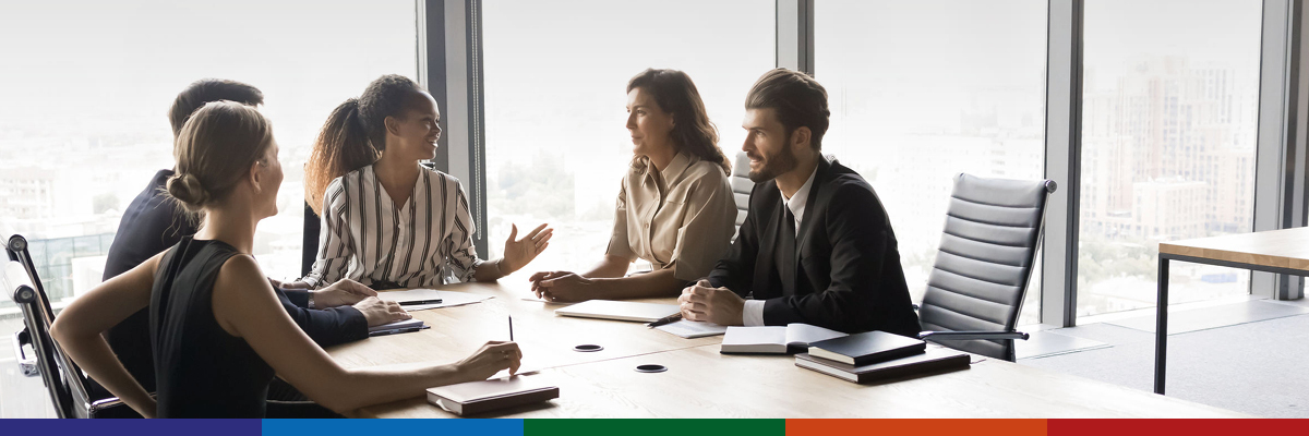 Image of colleagues round a table having a meeting